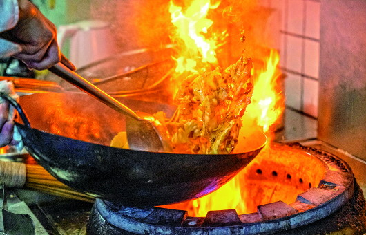 4月2日,在武汉市江岸区武汉天地商业街一饭店,厨师在后厨做菜。 新华社记者才扬摄