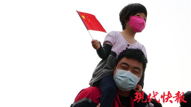 记者在现场注意到,北京协和医院医疗队驻地酒店旁的居民楼里,有居民在窗边挂上了五星红旗欢送医疗队,医疗队队员们也向他们挥动着手里的红旗致谢。