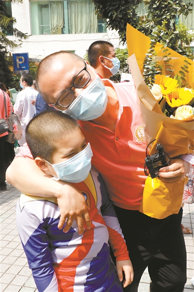“儿子,爸爸打赢怪兽回来了!快来抱一个!”医疗队员、“广州实力中青年医生”王川副主任医师给9岁的儿子力力一个大大的拥抱。因为在出征仪式上拿出儿子的奥特曼卡表达战“疫”决心,这位内分泌疾病专家在网络上意外走红,被网友称为“奥特曼”爸爸。不过,这张奥特曼卡不小心遗失在武汉了。当天,力力特意穿了一件奥特曼衣服,带着两张全新的奥特曼卡,和妈妈一起来迎接爸爸回家。“我不在家的这段时间,感觉孩子变得更懂事了。”王川说道,“回家第一件事,我想给他们母子俩做一顿饭吃。”