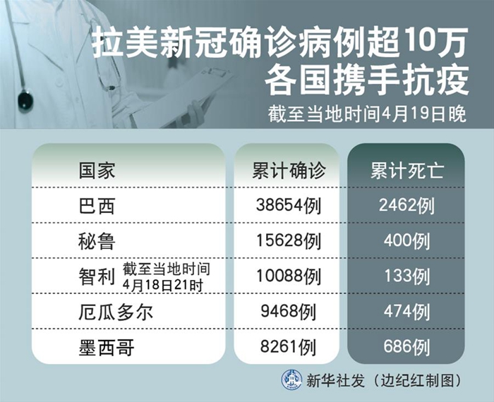 新华社圣保罗4月19日电 综述:拉美新冠确诊病例超10万 各国携手抗疫