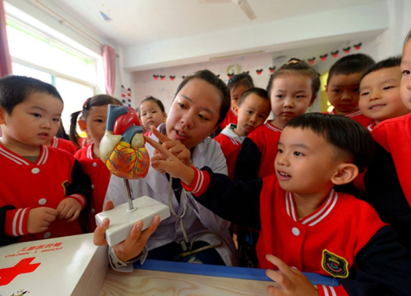医护人员讲授关于心脏的常识,教育孩子们珍爱生命王晓摄