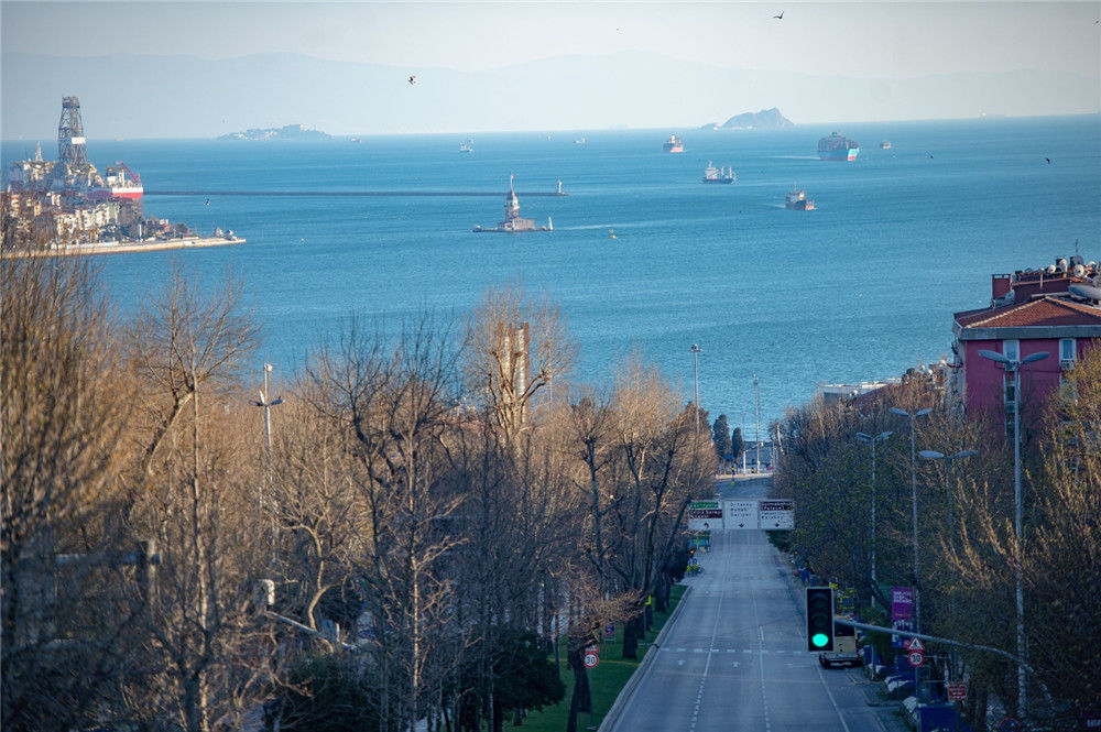 往日繁忙的博斯普鲁斯海峡,如今只剩少量船只通航。