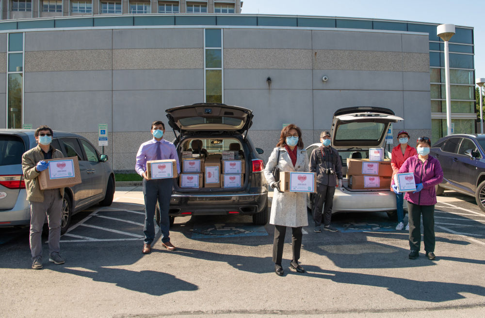 2020年4月6日,在美国马里兰州贝塞斯达,“华人支援医院”的成员准备将一批医疗物资捐献给当地一家医院。(新华社发)
