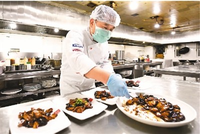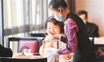 4月13日,在河北廊坊市安次区一家餐厅,厨师为客人分餐。新华社发
