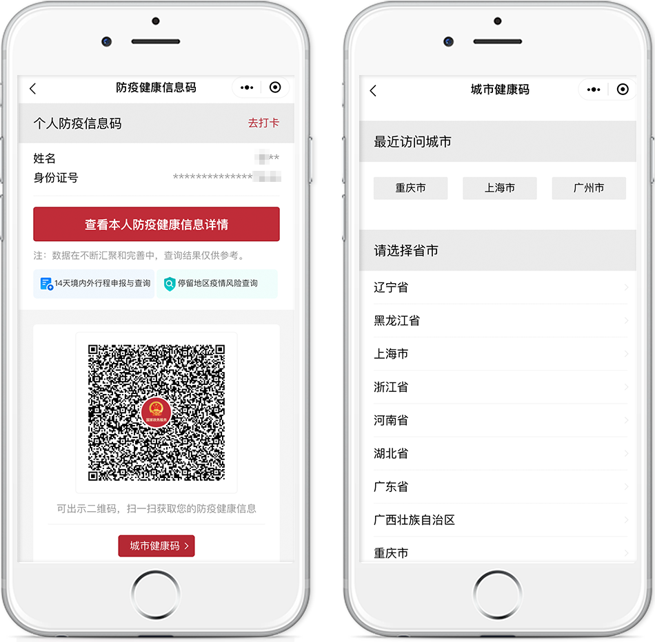 “防疫健康信息码”为你的跨省出行保驾护航,关联全国31个省(区、市)及新疆生产建设兵团防疫“健康码”信息,实现了信息共享和互通互认,全国绝大部分地区可“一码通行”。