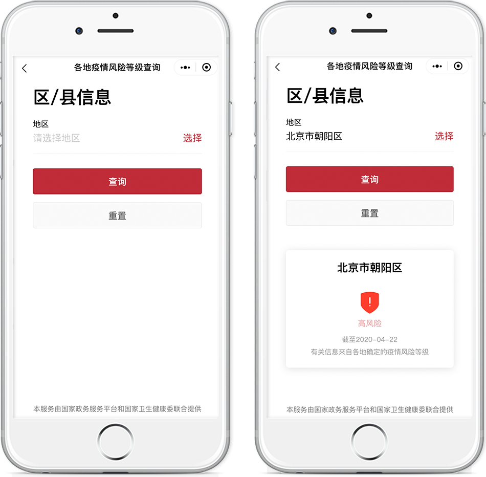 出行前,你可以用此服务查询你所在地和目的地的疫情风险等级。该服务根据国家卫生健康委数据进行动态更新,只需简单输入地区即可查询。