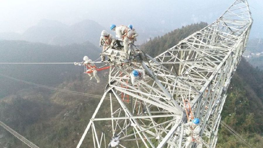 第一次爬塔时,田贵阳心里直打怵。“训练的时候,师傅教我们不要往下看,往上看,看着脚钉往上爬。”现在,工作12年的他早已轻车熟路,120米高的过江塔,蹭蹭蹭六七分钟就爬了上去。而上了塔工作才刚开始,要是碰上任务多,在半空一待就得五六个小时。