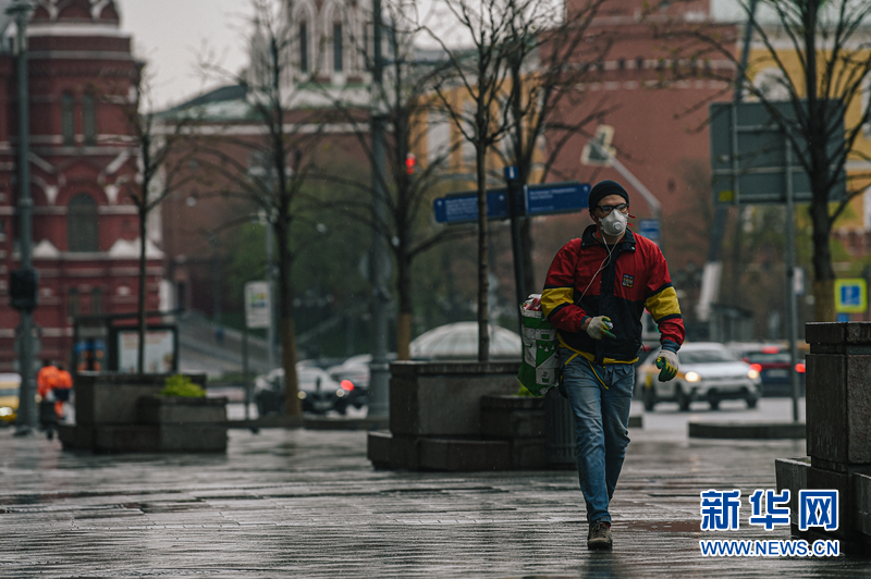 5月4日,在俄罗斯首都莫斯科,一名男子佩戴口罩出行。 为遏制新冠疫情蔓延,俄罗斯各地大都采取隔离措施,要求民众避免非必要外出。 新华社发(叶甫盖尼·西尼岑摄)