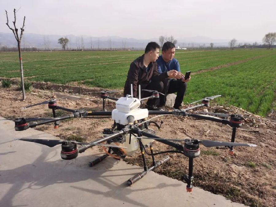 无人机飞手正在田边校准农业数据 李虎威 摄