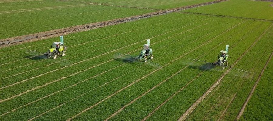 农业托管改变了当地的农业生产方式,山西省翼城县新翔丰农业科技有限公司植保作业人员在田间进行除草作业 李虎威 摄