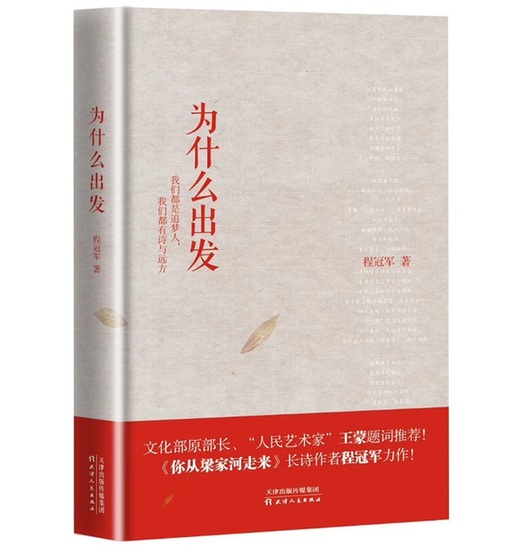 “从人民的愿望出发,以人民的利益为归宿。”这是著名作家王蒙先生为程冠军的诗集《为什么出发》所题写的推荐词。日前,他的新版诗集《为什么出发》由天津人民出版社出版发行。