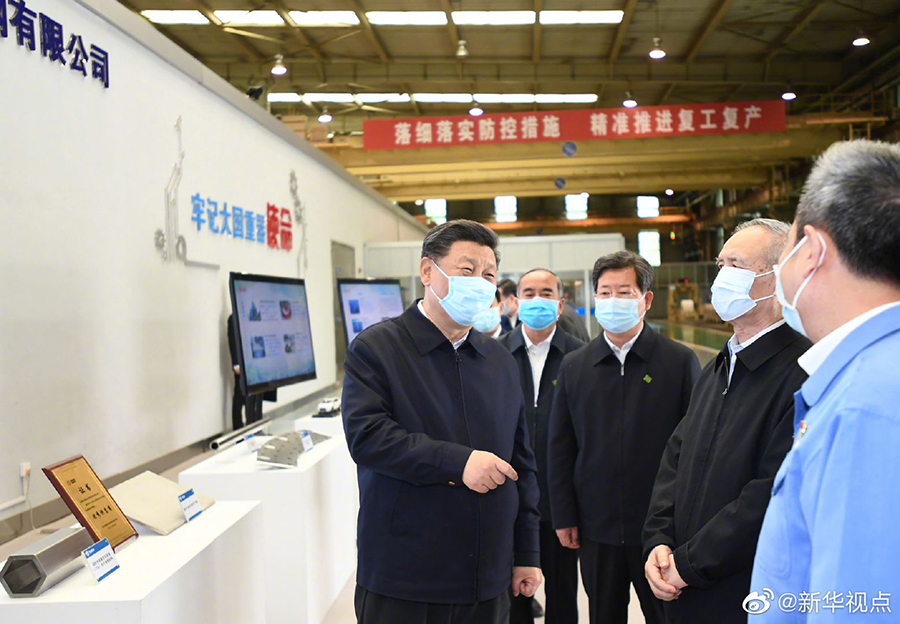 12日上午,正在山西考察的习近平总书记来到太钢不锈钢精密带钢有限公司,走进生产车间了解企业防疫抗疫和生产运行情况,同工人们亲切交谈,叮嘱他们不要麻痹松懈,切实抓好各项防控措施,保持零感染。习近平指出,全国防疫工作进入新阶段,要在继续抓好各项防控措施的前提下,更好复工复产,做到安全生产、健康生产,力争把损失降到最低,努力完成今年的目标任务,为实现“两个一百年”奋斗目标作出贡献。(文字记者:张晓松、朱基钗 摄影记者:李学仁、谢环驰、刘彬)