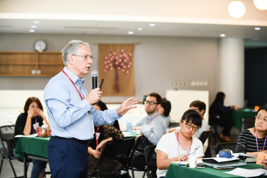 Nick校长(图中站立者)与同事交流。 受访者供图
