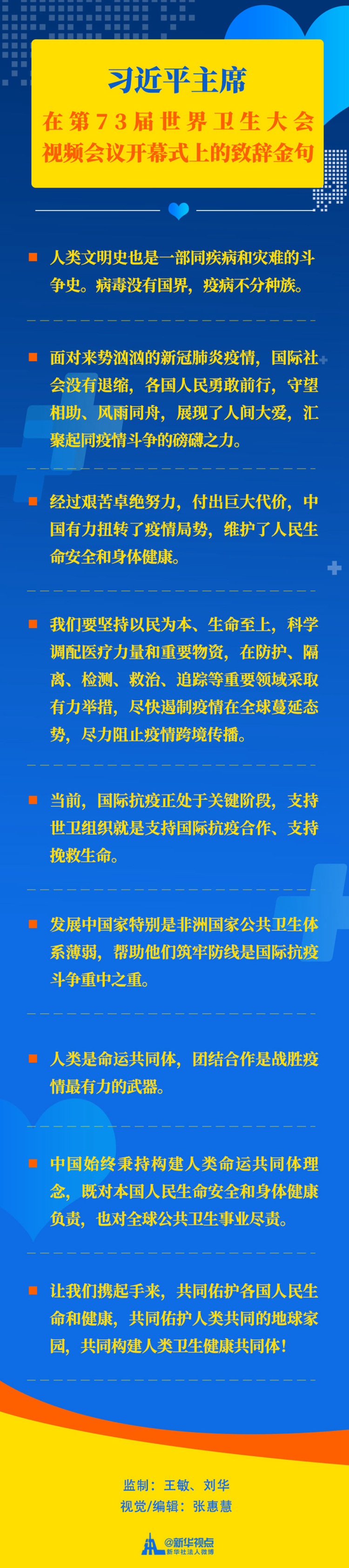 习近平主席在第73届世界卫生大会视频会议开幕式上的致辞金句
