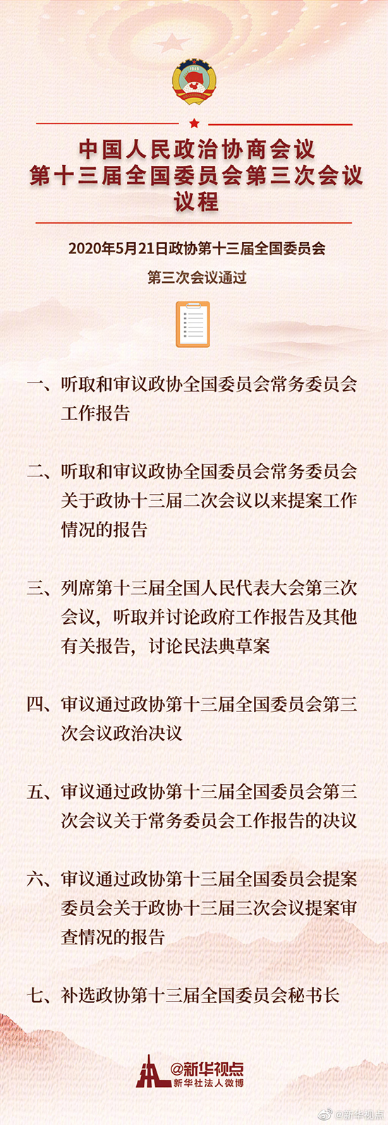 中国人民政治协商会议第十三届全国委员会第三次会议议程-新华网