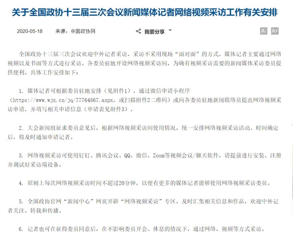 两会开幕在即,5月18日,中国政协网发布了这样一则通知: