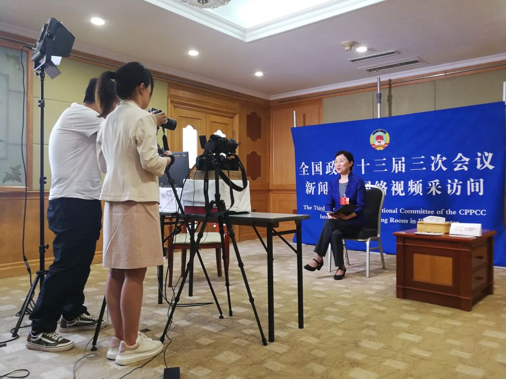 全国政协委员、湖南省政协主席李微微20日在友谊宾馆驻地接受网络视频采访。