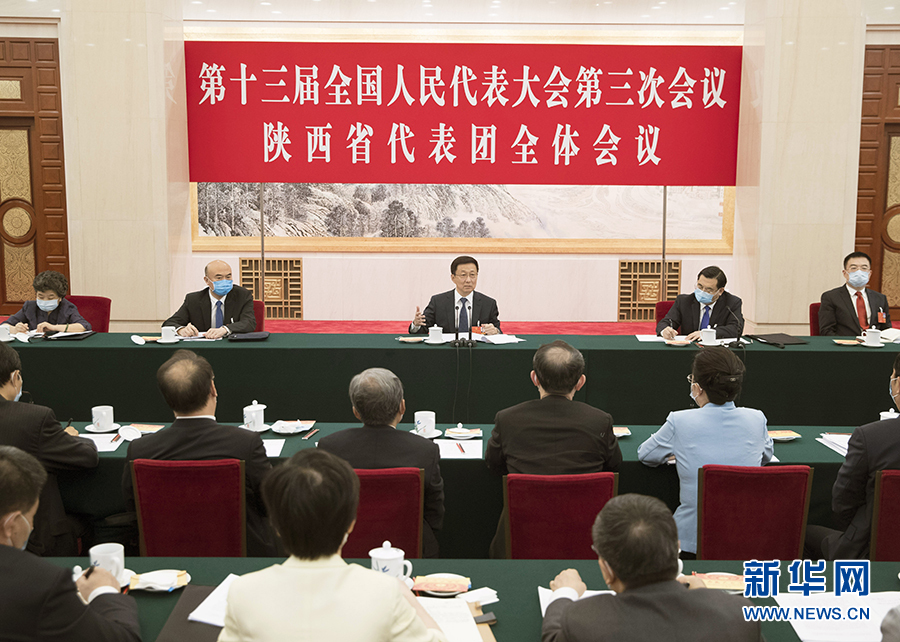 5月22日,中共中央政治局常委、国务院副总理韩正参加十三届全国人大三次会议陕西代表团的审议。 新华社记者 王晔 摄