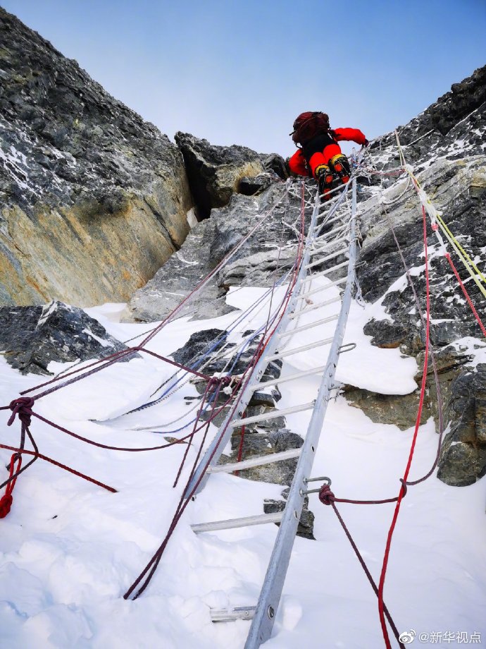 2020珠峰高程测量登山队队员已跨过第二台阶,准备攀登第三台阶,进行冲顶