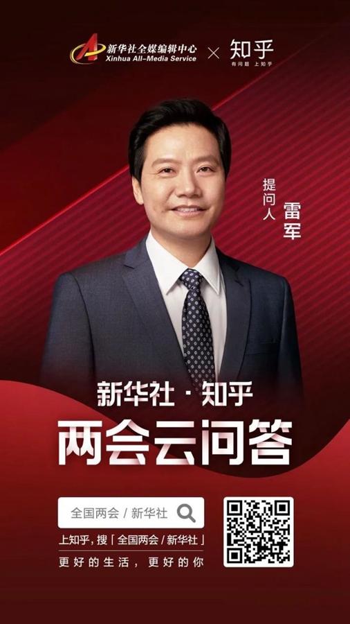 今年全国两会期间,新华社联合知乎发起《两会云问答》,钟南山、雷军、姚明、张文宏、雷佳、郎朗首次跨界“云”问答。企业家雷军的问题是:未来几年,科技领域会有哪些重大突破?将为哪些行业带来新机遇?
