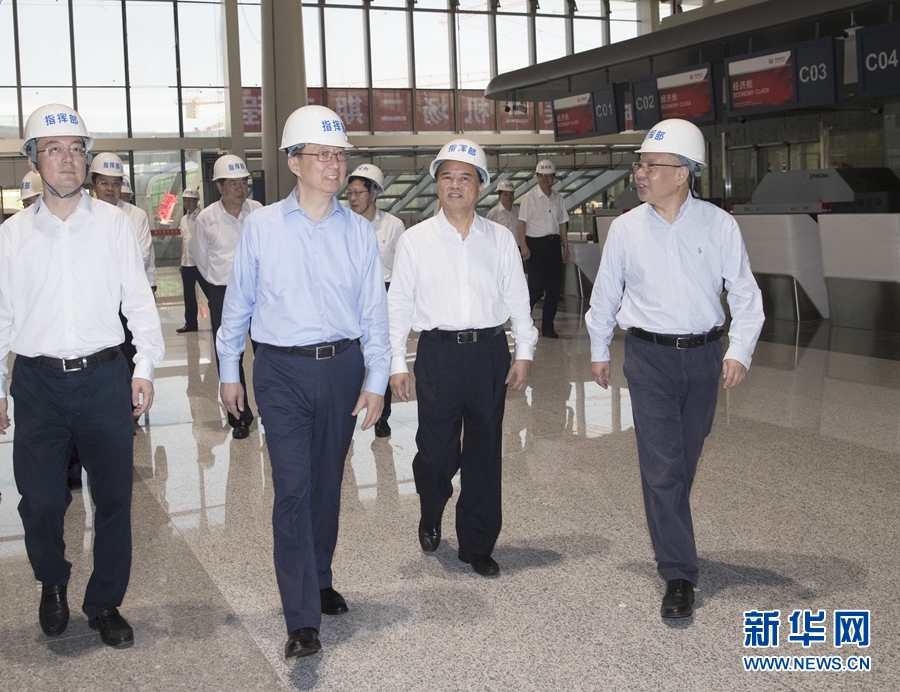 5月30日至31日,中共中央政治局常委、国务院副总理韩正在海南调研。这是5月30日,韩正在海口美兰国际机场二期扩建项目施工现场,了解规划建设和投产运营准备情况。 新华社记者 王晔 摄