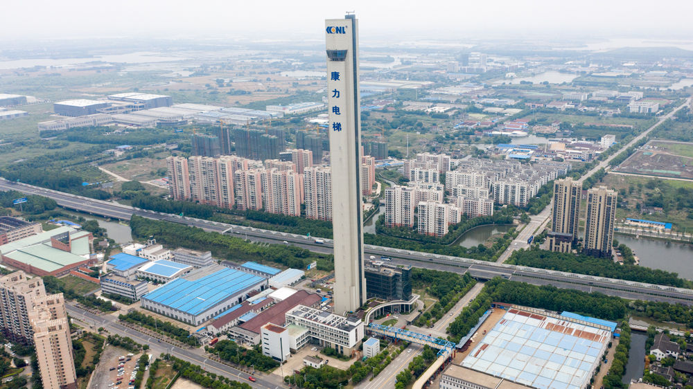 站在288米高的康力电梯试验塔上