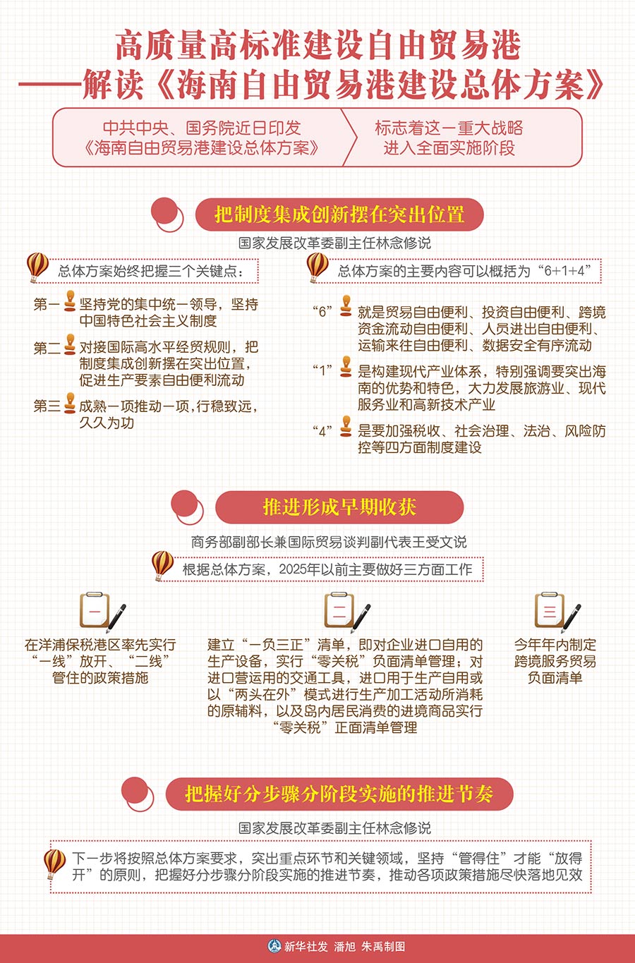 新华社北京6月8日电 题:高质量高标准建设自由贸易港——解读《海南自由贸易港建设总体方案》