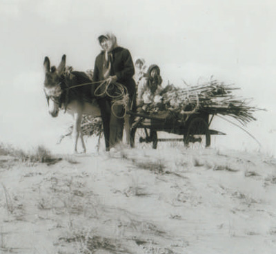 年轻时的白春兰带着两个女儿去种树,车上拉着树苗。(资料照片)
