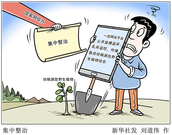 新华社北京6月22日电 记者22日从国家网信办获悉,为切实遏制网上售卖珍稀濒危野生植物行为,国家网信办即日起将组织各地网信部门会同属地相关部门进行集中整治,对问题严重、影响恶劣的网站平台、网络账号及相关责任人依法依规严肃查处,并向社会公众通报处置结果。