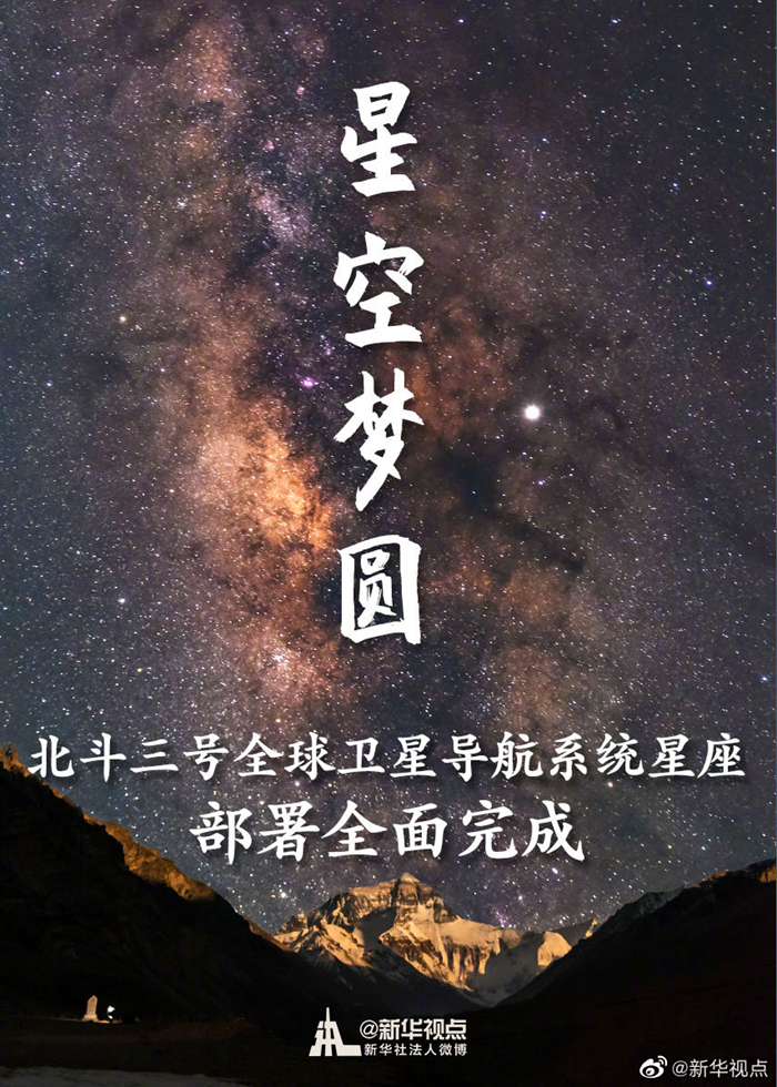 西昌卫星发射中心宣布:北斗三号最后一颗全球组网卫星顺利进入预定轨道,发射任务取得圆满成功。这是长征系列运载火箭的第336次飞行。(记者李国利、胡喆)