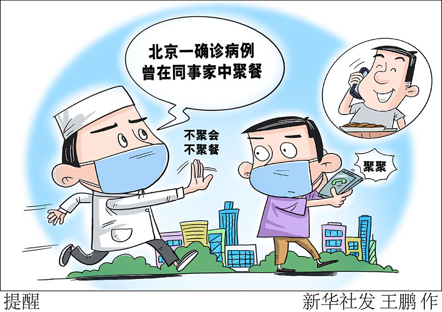 新华社北京6月27日电(记者魏梦佳)在27日下午举行的北京市新型冠状病毒肺炎疫情防控工作新闻发布会上,北京市疾病预防控制中心副主任庞星火通报了26日北京新增新冠肺炎确诊病例的具体情况,其中有一病例曾在同事家中聚餐。专家提醒市民,端午假期即将结束,要继续坚持不聚集、不聚会、不聚餐,做好日常防护,切勿放松警惕。