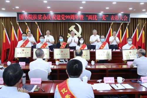 国务院扶贫办党组同志,办机关和直属事业单位全体党员,业务主管社团党支部书记和受表彰的同志参加会议。