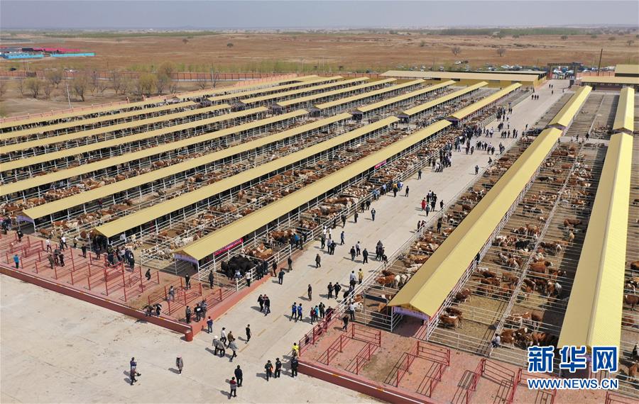科右中旗肉牛交易市场(5月1日摄,无人机照片)。新华社发(梁永峰 摄)