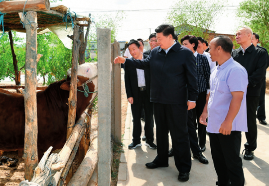 6月8日,中共中央总书记、国家主席、中央军委主席习近平在宁夏考察调研。这是习近平在吴忠市红寺堡镇弘德村了解当地推进脱贫攻坚情况 谢环驰摄 /《瞭望》