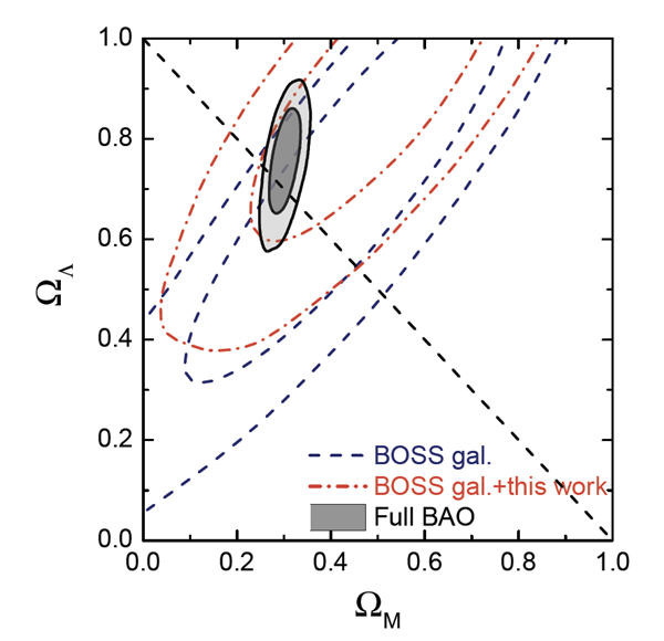 图为基于最新eBOSS观测得到的暗能量组分限制。来源:赵公博等,(eBOSS合作组),2020。
