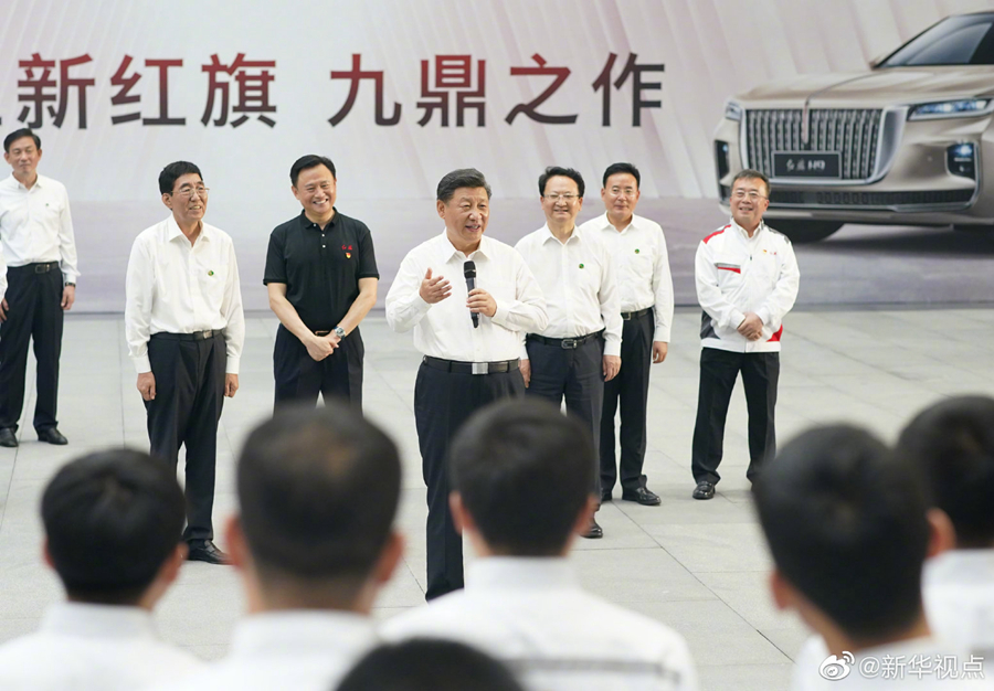 23日下午,正在吉林省考察的习近平总书记来到中国一汽集团研发总院,走进实验室了解企业技术研发情况,并察看了“红旗”等自主品牌的最新款式整车产品。习近平说,看了一汽技术创新和自主品牌建设成果展示,感到眼前一亮。现在,国际上汽车制造业竞争很激烈,信息化、智能化等趋势不断发展,对我们来讲有危有机,危中有机。一定要把关键核心技术掌握在自己手里,我们要立这个志向,把民族汽车品牌搞上去。(记者张晓松 、朱基钗 摄影: 鞠鹏、王晔、燕雁)
