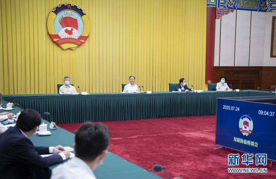 7月24日,十三届全国政协第38次双周协商座谈会在北京召开。中共中央政治局常委、全国政协主席汪洋主持会议。 新华社记者 李涛 摄