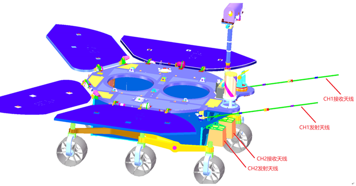 火星车次表层探测雷达天线在火星车上的安装位置示意图 中科院空天信息创新研究院供图