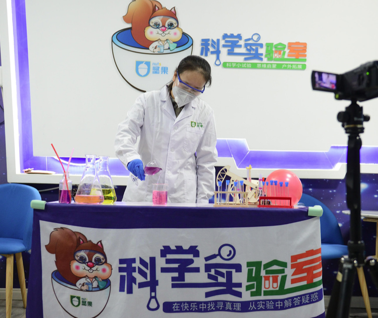 2月16日,呼和浩特市玉泉区青少年宫的老师通过线上课堂做测试酸碱度小实验