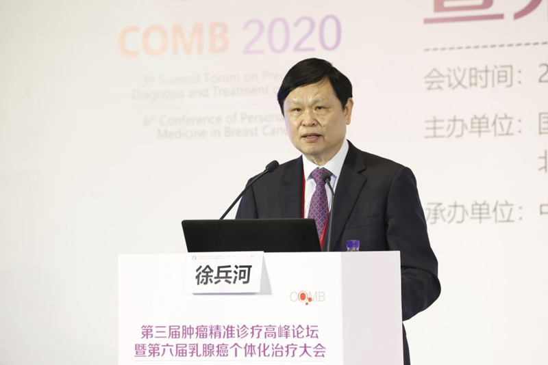 国家肿瘤质控中心乳腺癌专家委员会主任委员、中国医学科学院肿瘤医院徐兵河教授在第六届乳腺癌个体化治疗大会上发言。图片由受访者提供