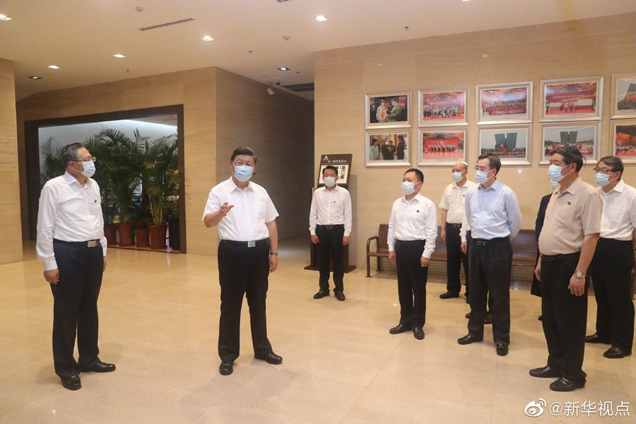 习近平总书记19日下午在安徽省合肥市考察调研。他在肥东县十八联圩生态湿地蓄洪区巢湖大堤罗家疃段,察看巢湖水势水情,看望慰问防汛抗洪一线人员、先进典型代表和参加抗洪抢险的解放军、武警部队官兵。当天下午,习近平在合肥还参观了安徽创新馆和渡江战役纪念馆,了解安徽省科技创新和新兴产业发展情况,重温革命历史、缅怀革命先烈。(文字记者:张晓松 摄影记者:鞠鹏 王晔 燕雁)