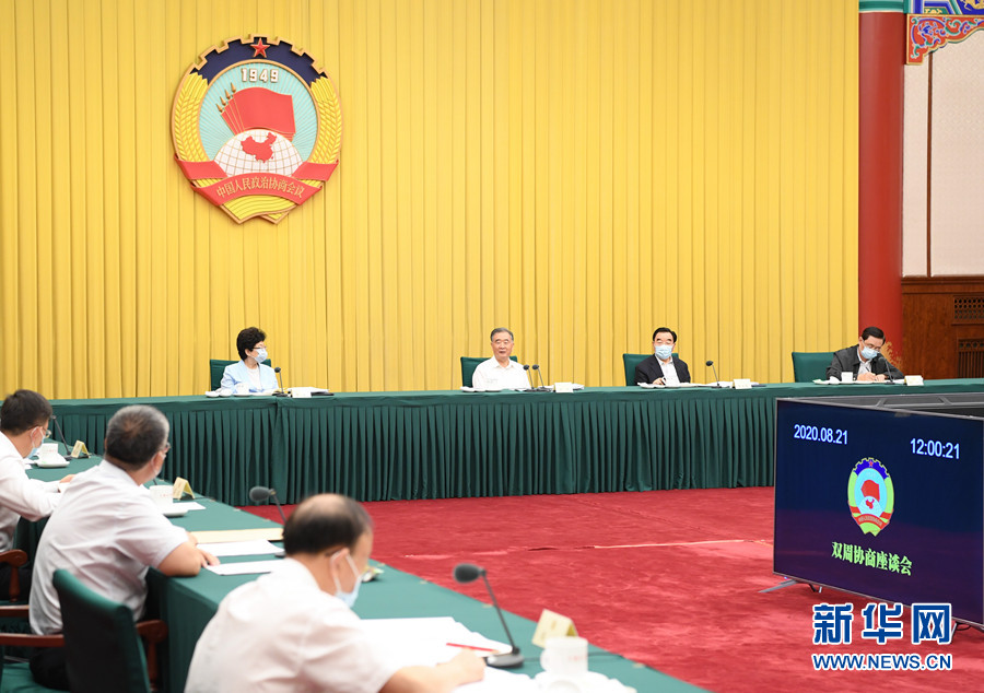 8月21日,十三届全国政协第39次双周协商座谈会在北京召开。中共中央政治局常委、全国政协主席汪洋主持会议。 新华社记者 申宏 摄
