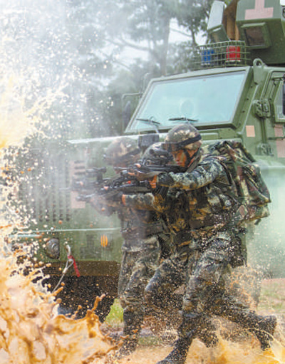 雨林深处,中队开展处置暴恐实战演练,锤炼实战本领。王文涛摄