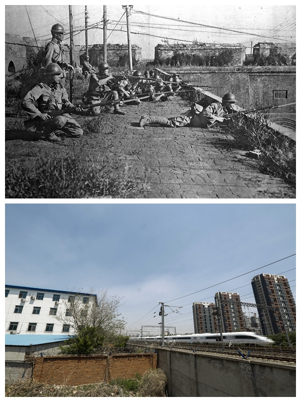 上图为1931年“九一八”事变次日晨,日军在沈阳外攘门上向中国军队进攻。