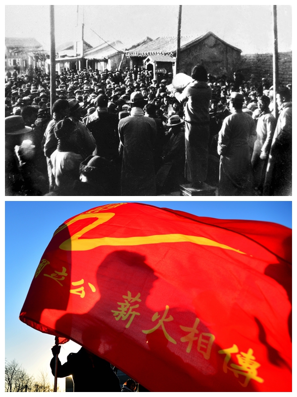 上图为1935年12月9日,“一二·九”运动在北平爆发。这是被军警挡在西直门外的大中学学生就地发表抗日演讲。