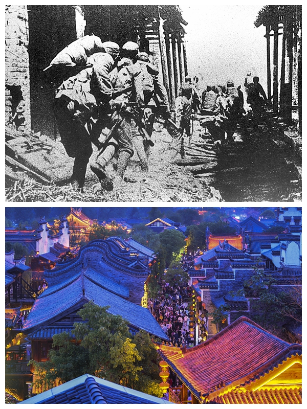 上图为1938年4月上旬,中国军队在台儿庄与日军展开激烈巷战。
