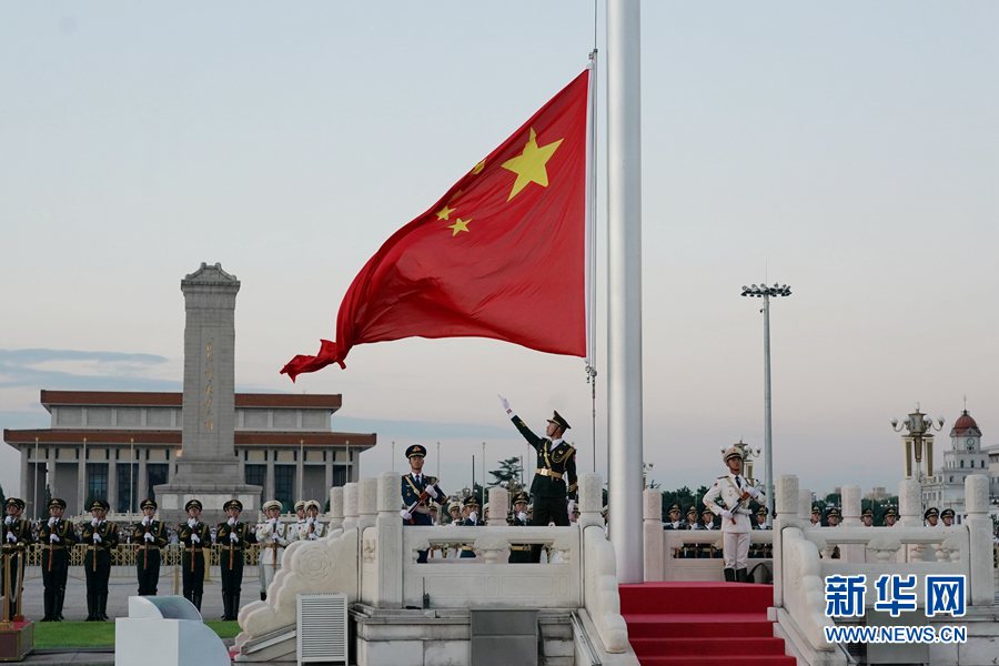 9月8日晨,北京天安门广场举行升国旗仪式。 新华社记者 鞠焕宗 摄