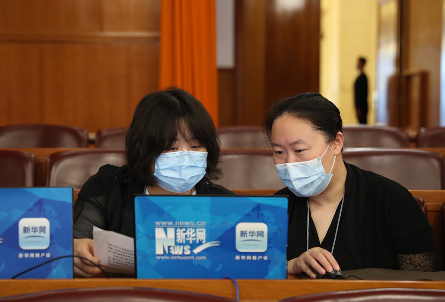 全国抗击新冠肺炎疫情表彰大会于9月8日上午10时在北京人民大会堂隆重举行。图为新华网直播团队正在进行准备工作。(新华网 翟子赫 摄)