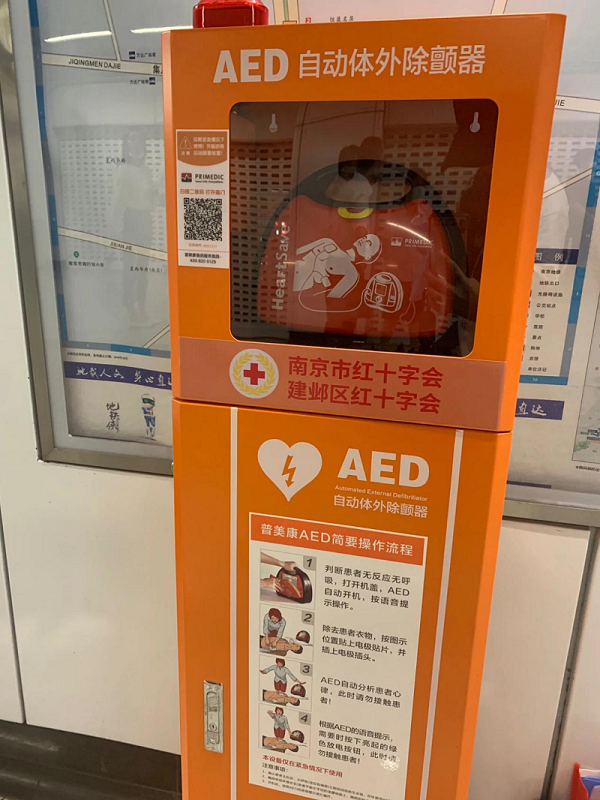 记者了解到,江苏从2015年开始陆续公共场所设置自动体外除颤器。2019年6月,南京市公共场所设置AED公益项目正式启动,首批100台AED在警务站、地铁站点等处配置到位。预计到今年年底,南京AED安装总数将超过2000台,目前,南京所有地铁站点AED安装已经率先在长三角地区实现了全覆盖。