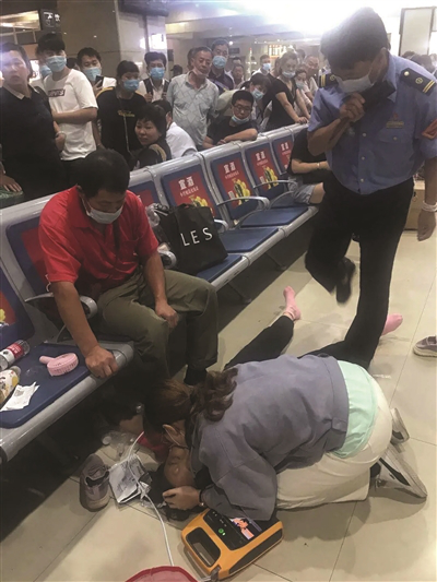 今年4月30日南京苜蓿园地铁站附近一家健身馆内一名女子出现心脏骤停,健身馆教练、地铁站值班站长、值班警员等接连对女子进行心肺复苏,并使用苜蓿园地铁站设置的AED对女子进行电除颤实现成功救人。地铁工作人员告诉记者,公司组织过相应的AED操作,当时他通过监控看到有人拿AED,就跟了过去,发现有人疑似心脏骤停,就迅速参与了急救的过程。